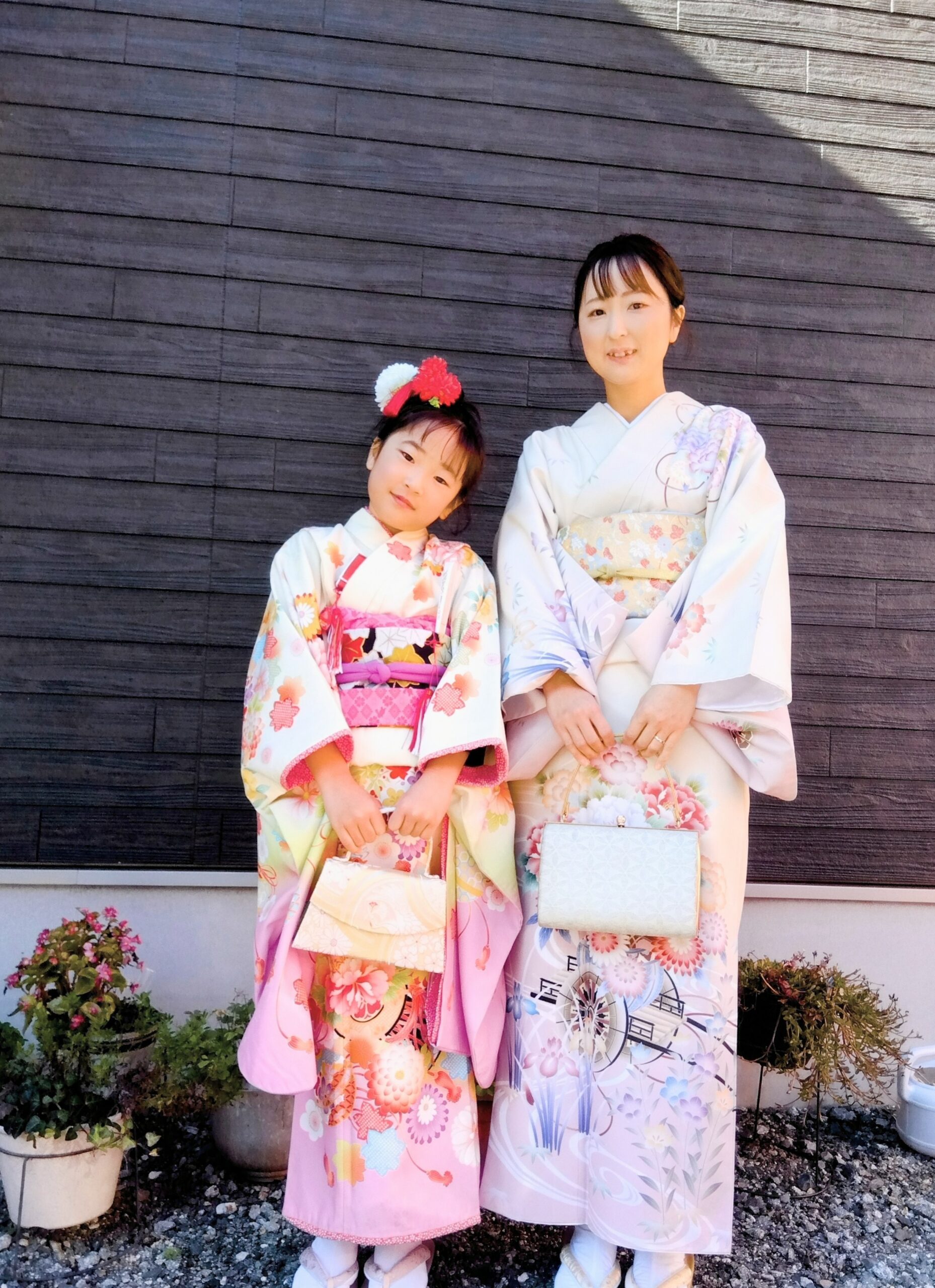 まずは、7歳の女の子とママの訪問着のお着付け。