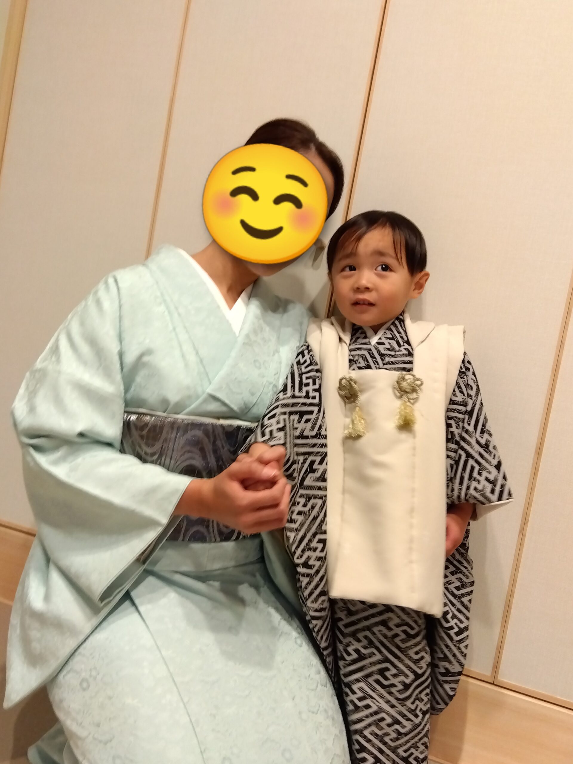 ママが着物の着付をしている間